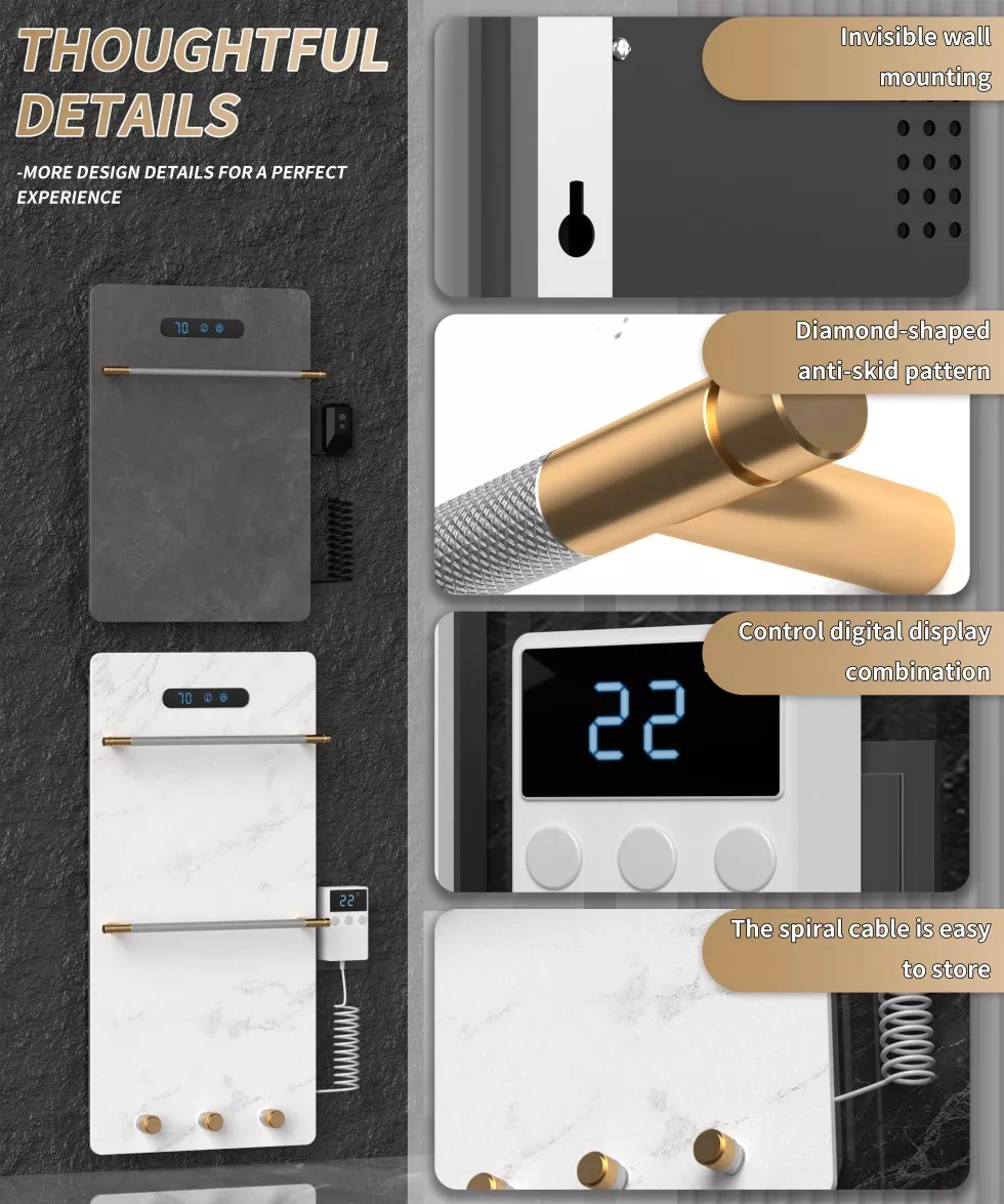 中国の専門メーカーであるMeshowは、高度な技術と絶妙な職人技を革新的に統合して、グレーグラフェンロックタオルラックを立ち上げ、グローバルユーザーに高品質の家庭での楽しみを提供します。優れた耐久性と効率的な熱伝導率を備えたグラフェンは、タオルラックの設計に統合され、構造的な耐久性を高め、優れた熱伝導性を紹介し、タオルの迅速な加熱と乾燥を達成します。この灰色のグラフェンロックパネルは、さまざまなバスルームの装飾スタイルに最適なモダンでミニマリストのデザインを特徴としています。